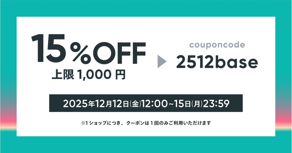 • BASEが実施する複数のキャンペーンに同時に応募いただいた場合は、法令上の規制そのほかの事由により、キャンペーンの特典を重複して付与できない場合がございます